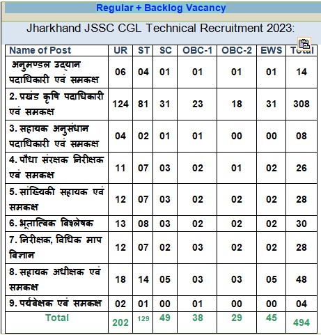 Jharkhand JSSC CGL Technical Recruitment 2023: Short Details